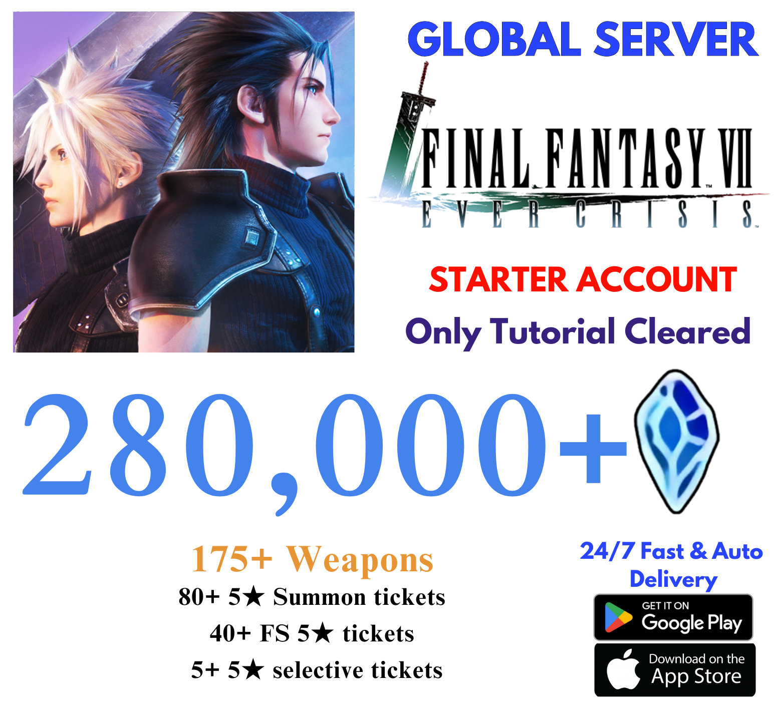 [GLOBAL] 280,000+Gems 175+ Weapons FFVII EVER CRISIS Starter Reroll Account