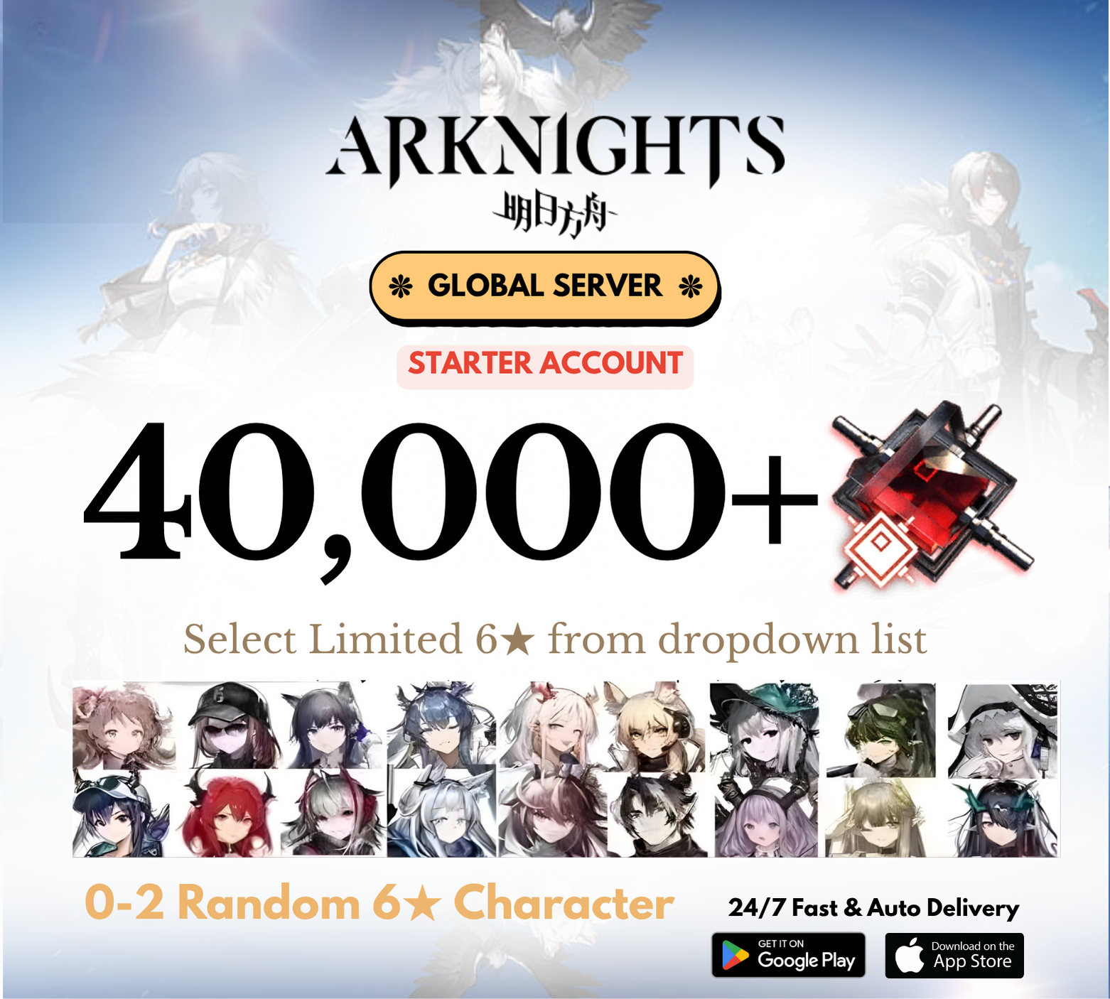 [GLOBAL] 30,000-40,000+ Orundum +Slected Limited 6⭐️ Arknights Starter Reroll Account