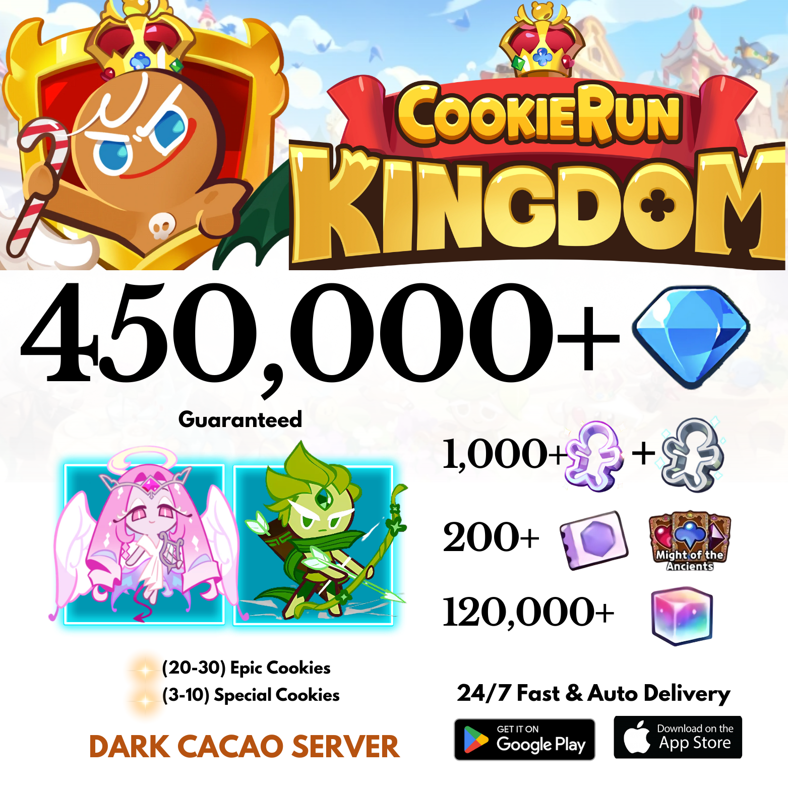 [GLOBAL/Dark Cacao] 450,000+Gems+Eternal Sugar+Wind Archer Cookie Run: Kingdom Starter Account