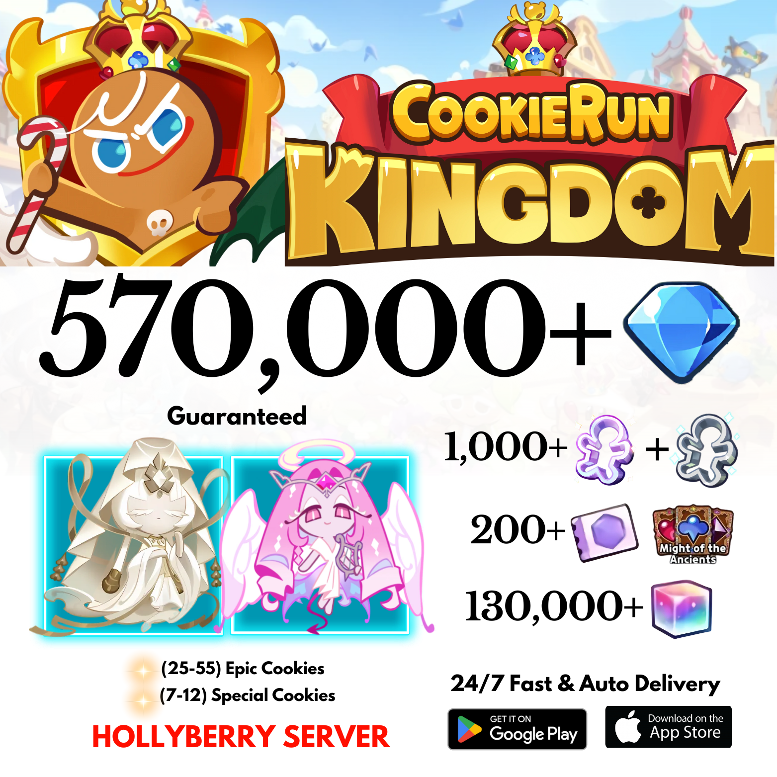[GLOBAL/Hollyberry] 570,000+Gems+Eternal Sugar+Mystic Flour Cookie Run: Kingdom Starter Account