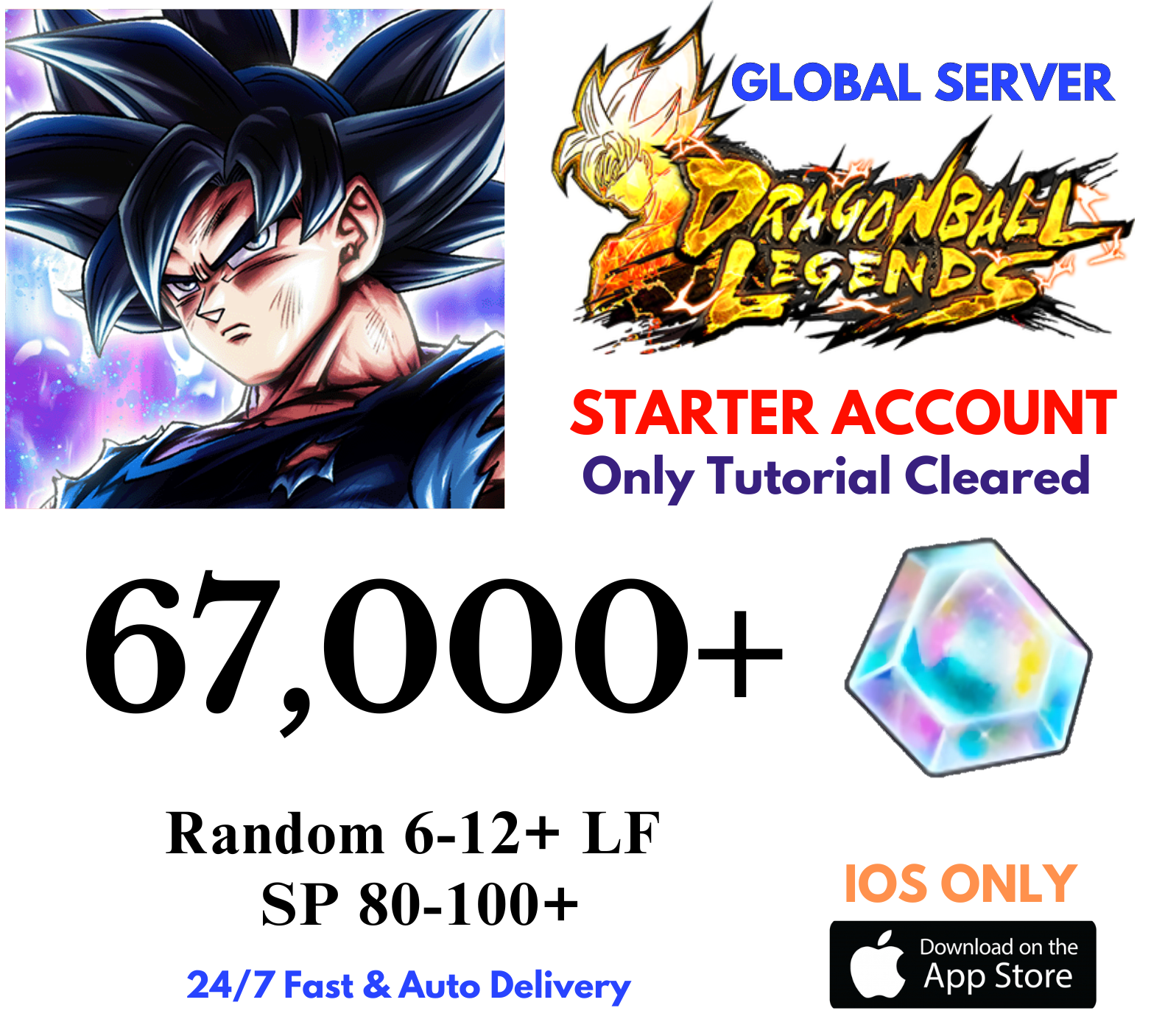 [GLOBAL/iOS] 67,000+Gems Dragon Ball Legends Lv.1 Starter Reroll Account